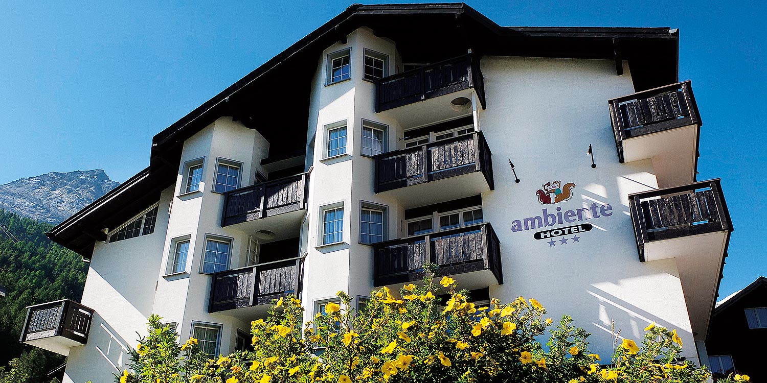 Die großzügigen Zimmer im Ambiente - übrigens alle mit Balkon - bieten einen tollen Blick auf die umliegenden Viertausender. Im Ambiente finden Sie Einzel-, Doppel-, Superior-, Dreibett- und Familienzimmer. Die hellen und mit viel Charme eingerichteten Zimmer sind mit Flachbild-Kabel-TV, Radio, Safe, Badezimmer mit WC/Bad oder Duschkabine und Haartrockner ausgestattet. Unsere Superiorzimmer sind mit Sprudel-Badewannen ausgestattet.